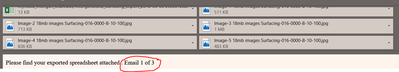 When exporting forms that have photos and the attachment size reached 5mb, then you’ll receive multiple emails due to attachment size limit.