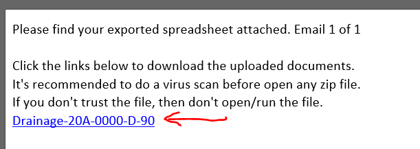 In the email, if a form has files/documents, there'll be a link for you to click and download those files/documents as zip file.